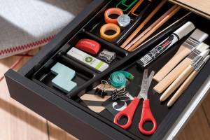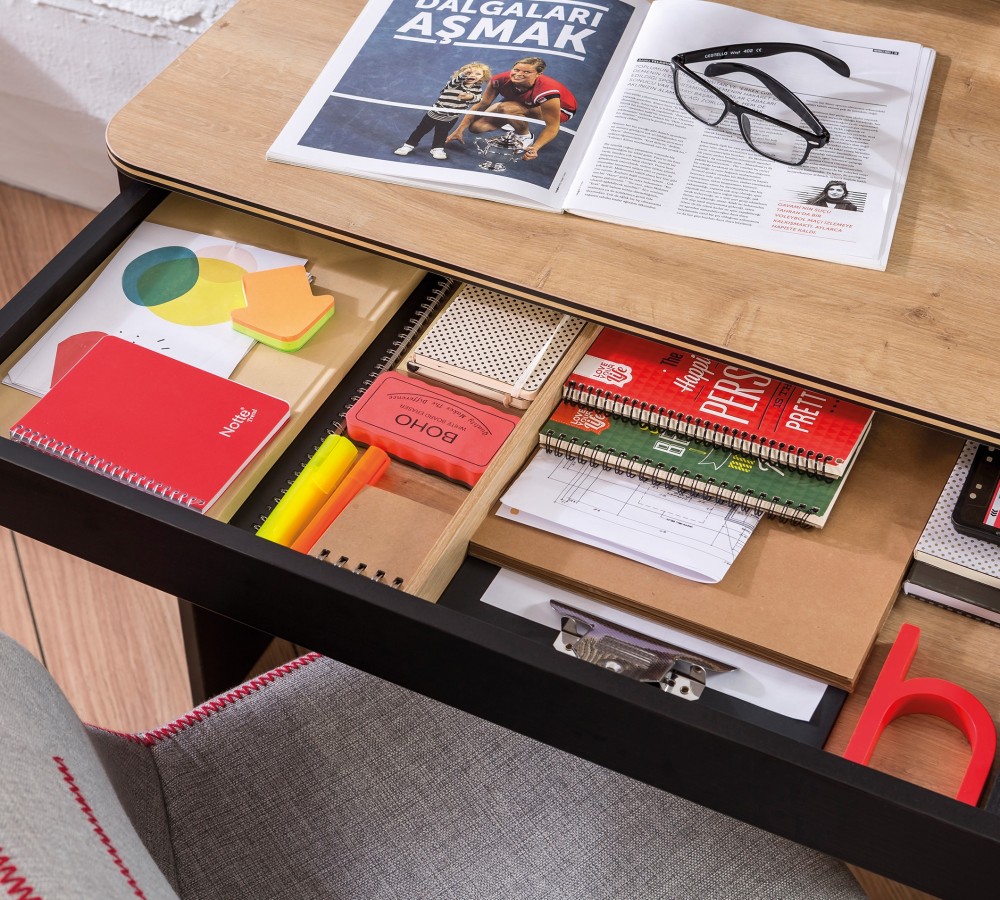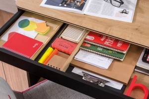 Biroul are spatii pentru depozitarea si aranjarea diverselor obiecte.