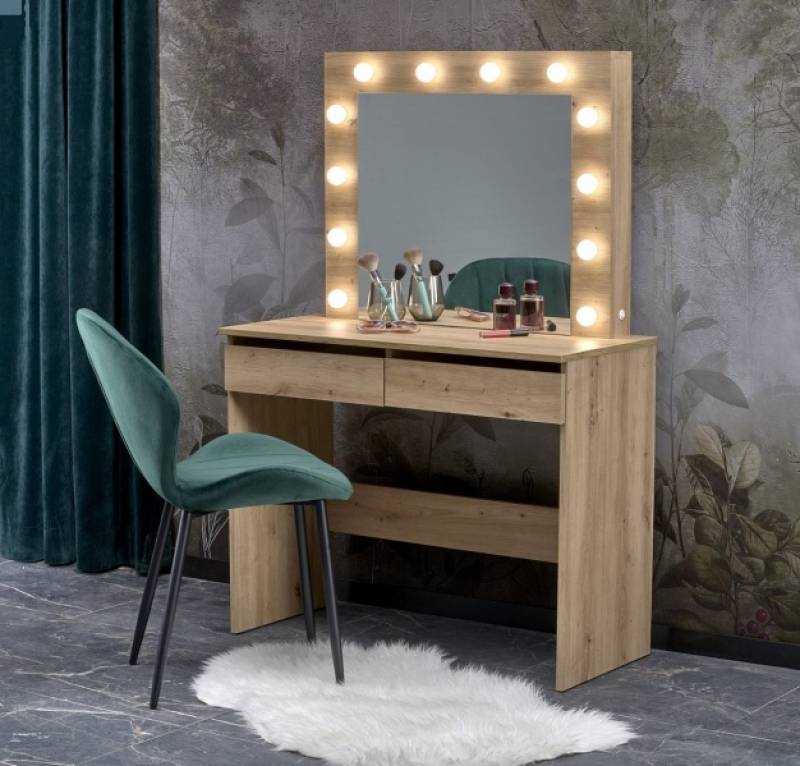 Masa de machiaj cu 2 sertare si oglinda cu led HOLLYWOOD ARTISAN 94x140x43cm stejar artisan