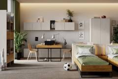 Set 2 birouri mici cu corpuri suspendate TEEN FLEX 04B 300x110x193cm cu 2 comode, sistem de iluminare LED