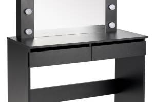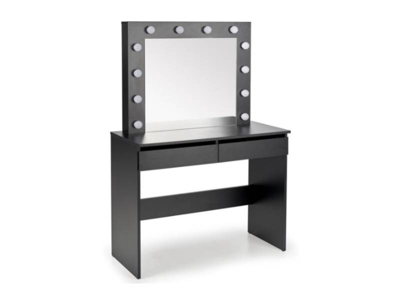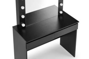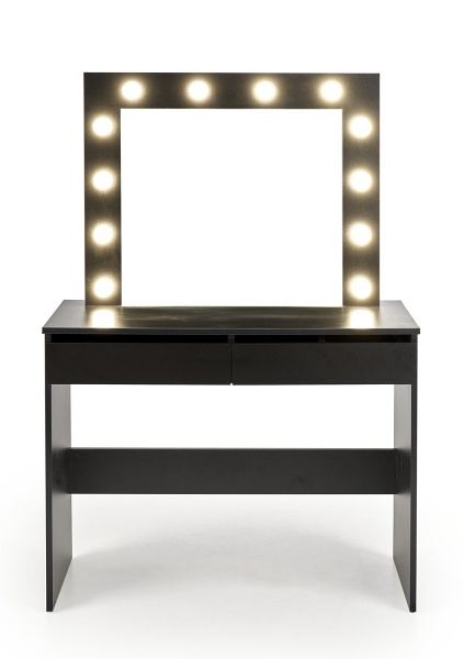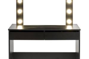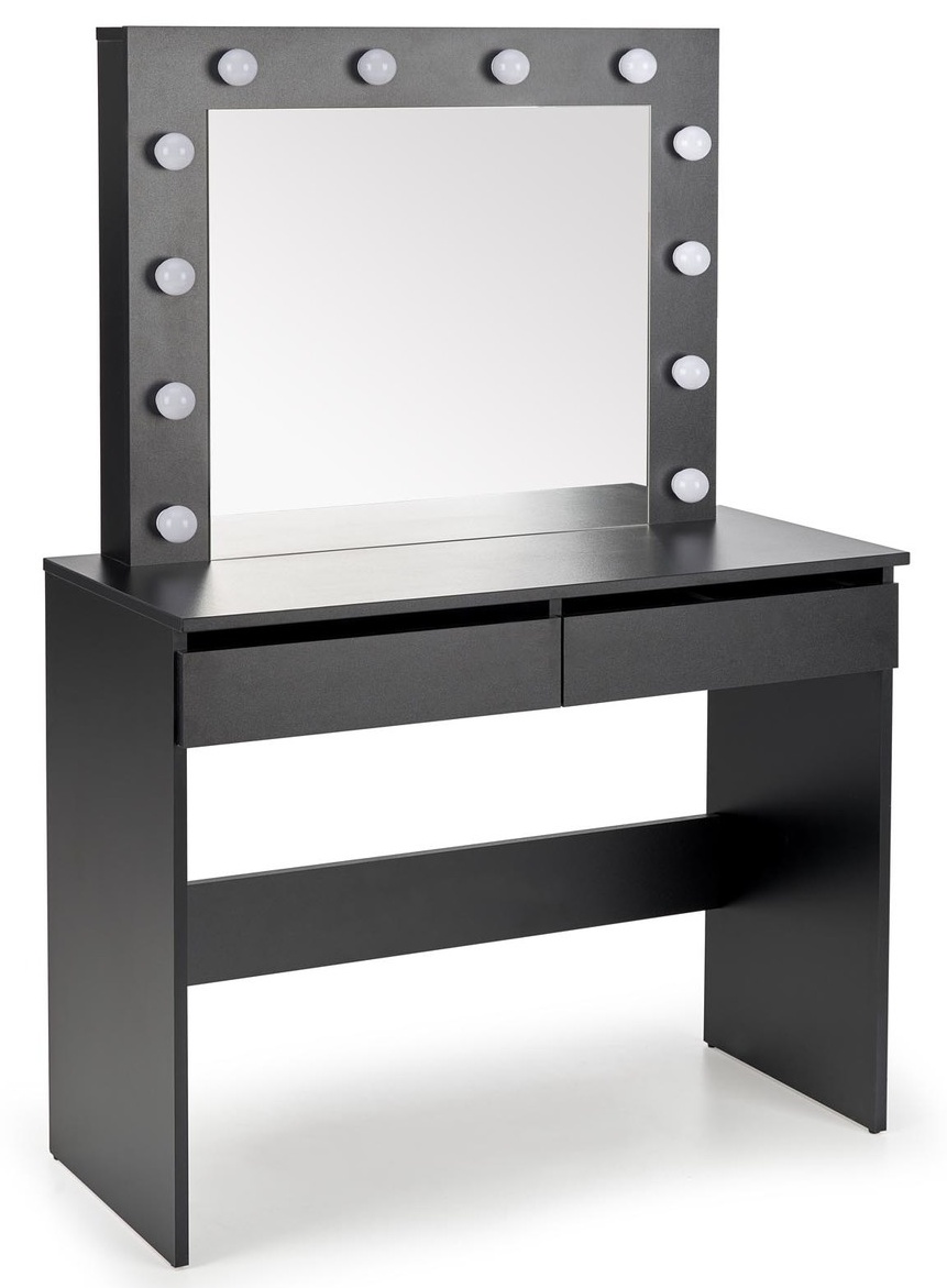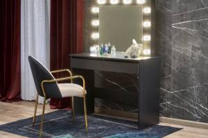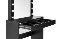 Masa de machiaj cu 1 sertar si oglinda cu led HOLLYWOOD BLACK 94x140x43cm negru