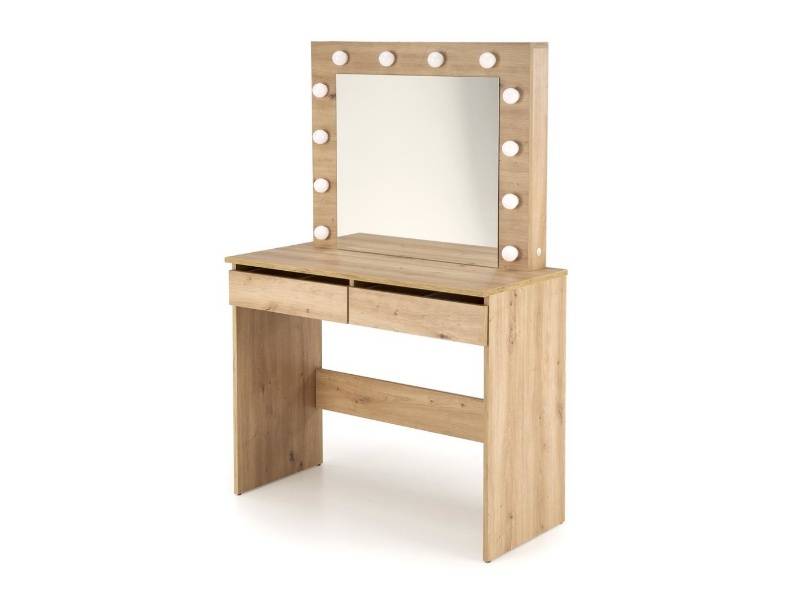 Masa de machiaj cu 2 sertare si oglinda cu led HOLLYWOOD ARTISAN 94x140x43cm stejar artisan