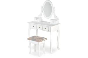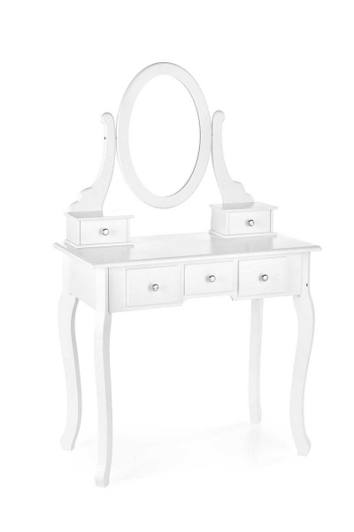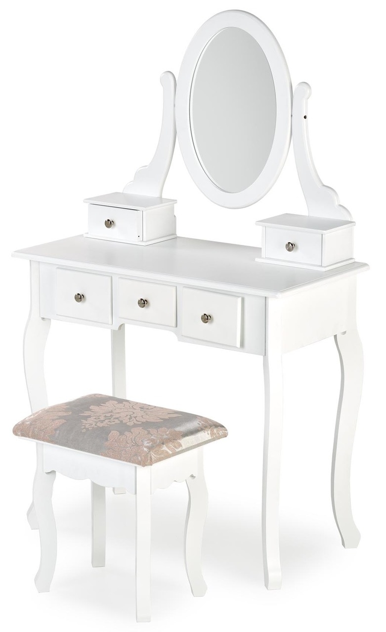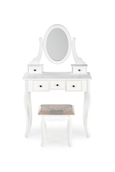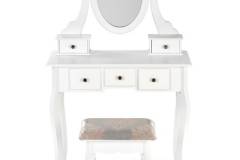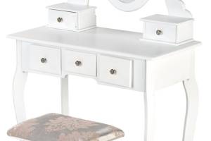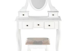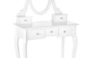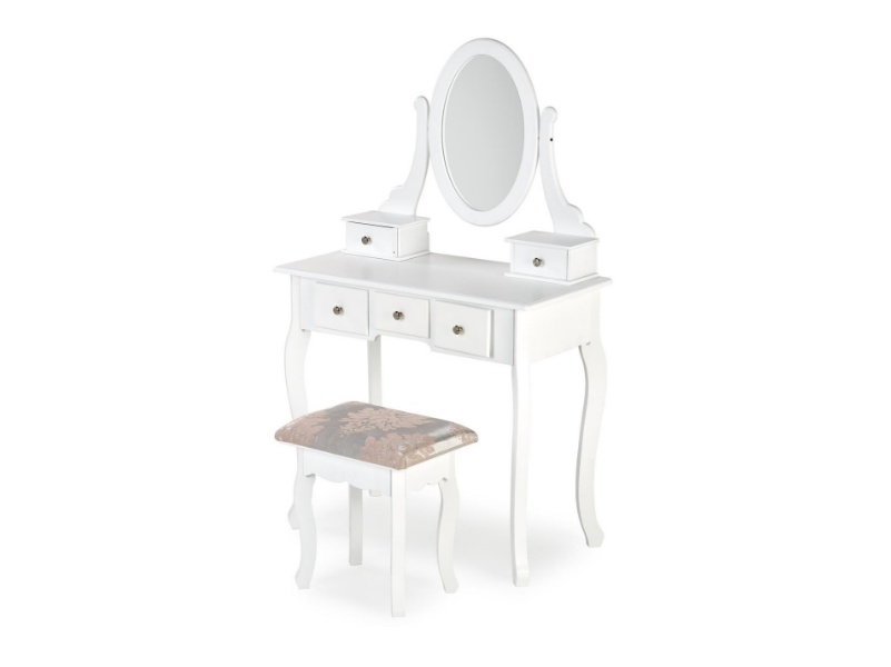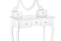 Masa de machiaj cu 5 sertare, oglinda si scaun SARA 80x130x40cm alb