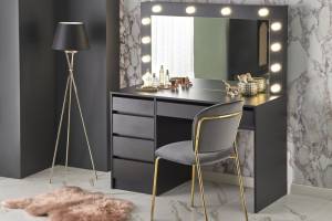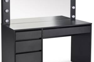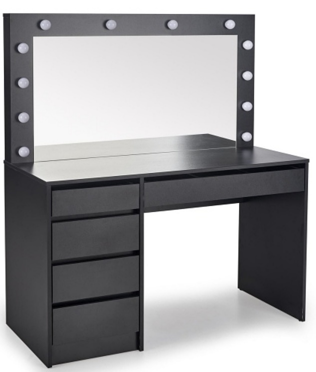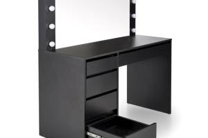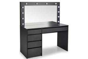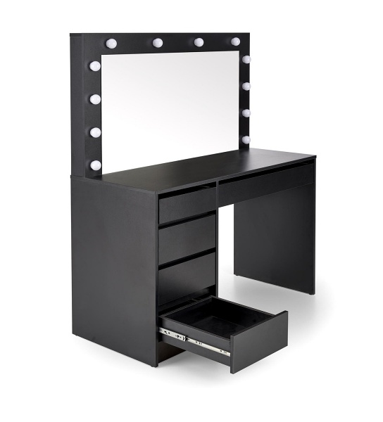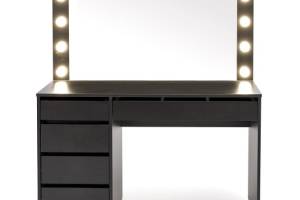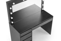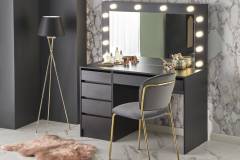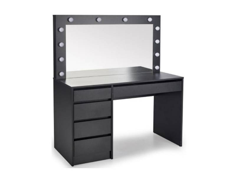 Masa de machiaj cu 5 sertare si oglinda cu led HOLLYWOOD XL BLACK 120x140x55cm negru