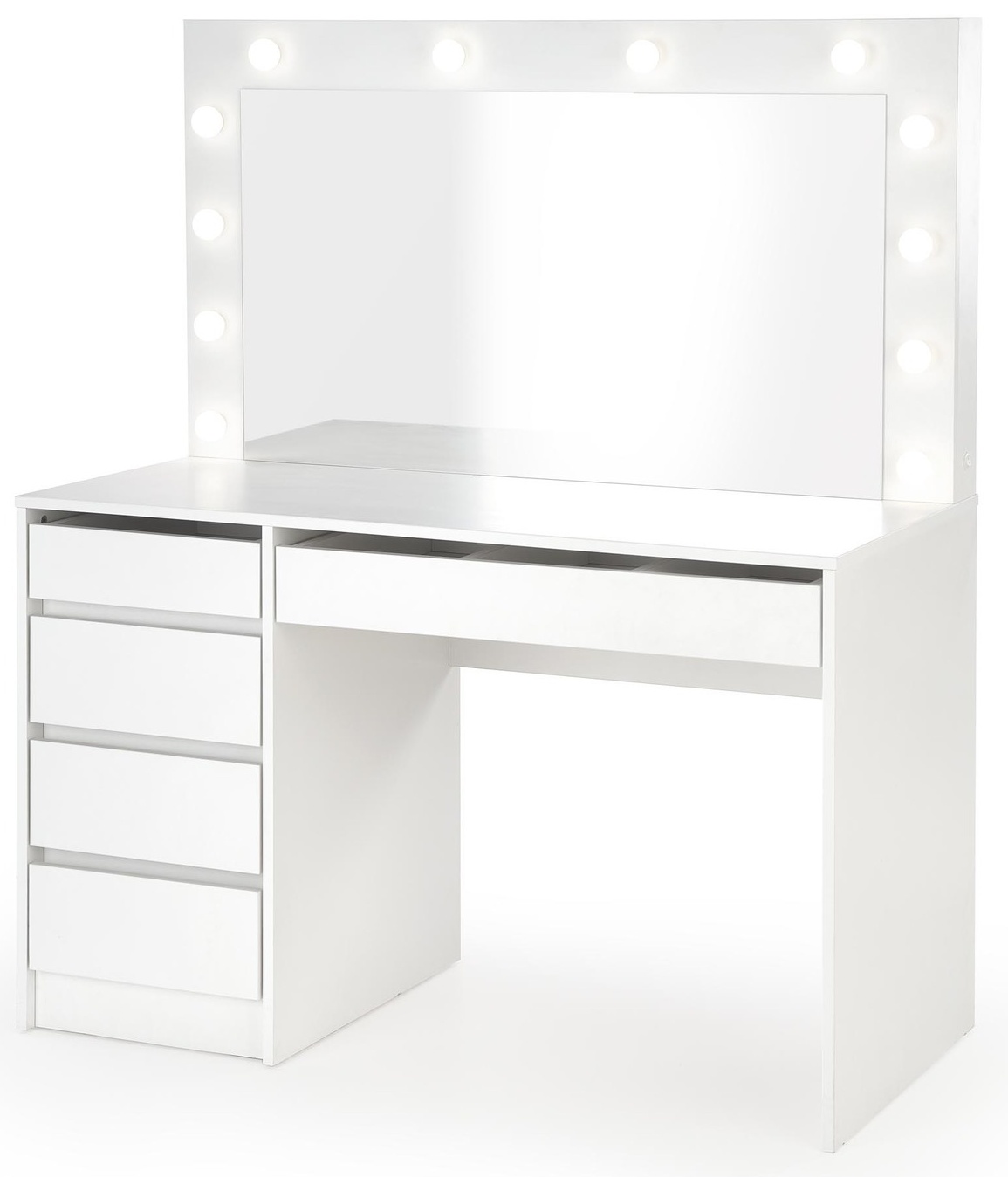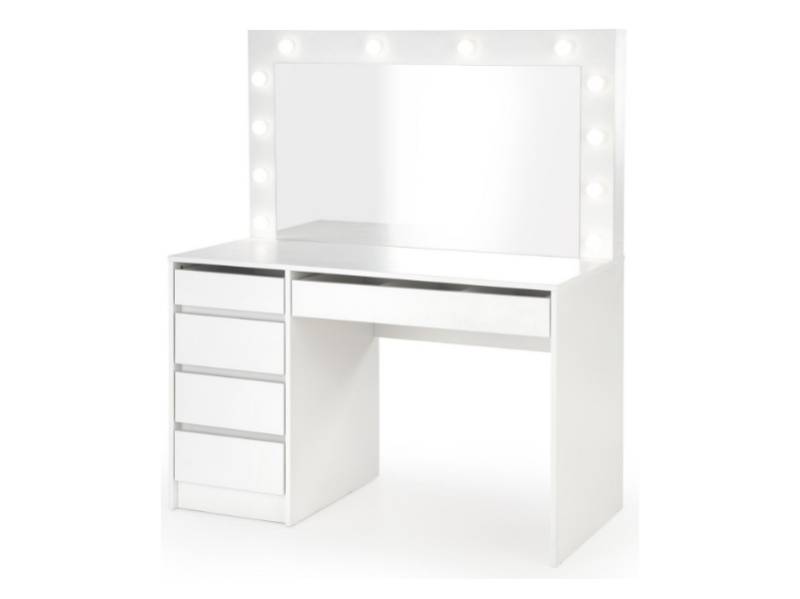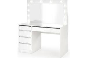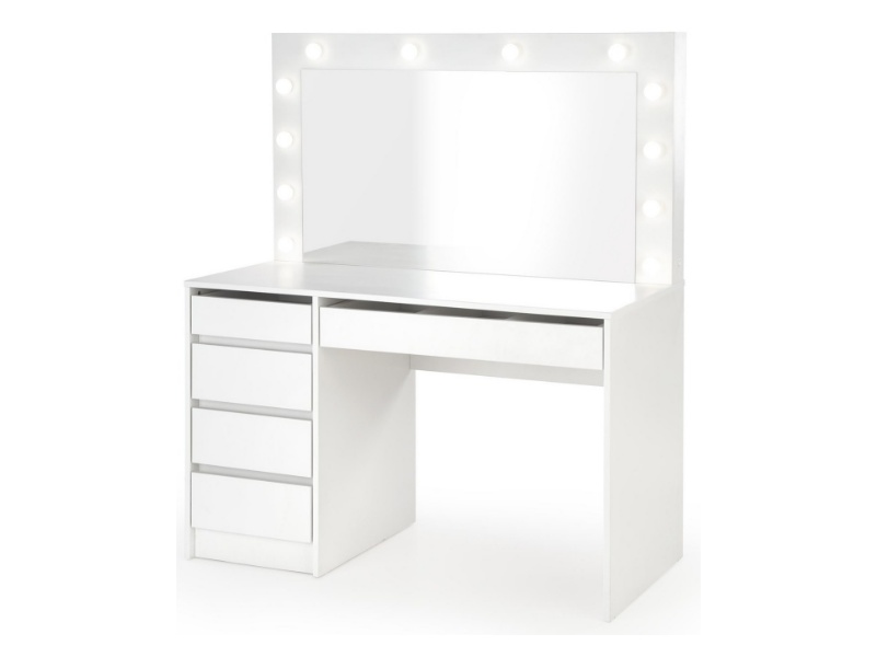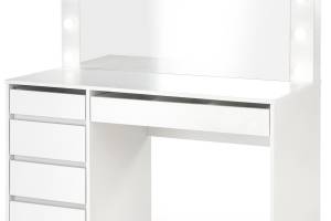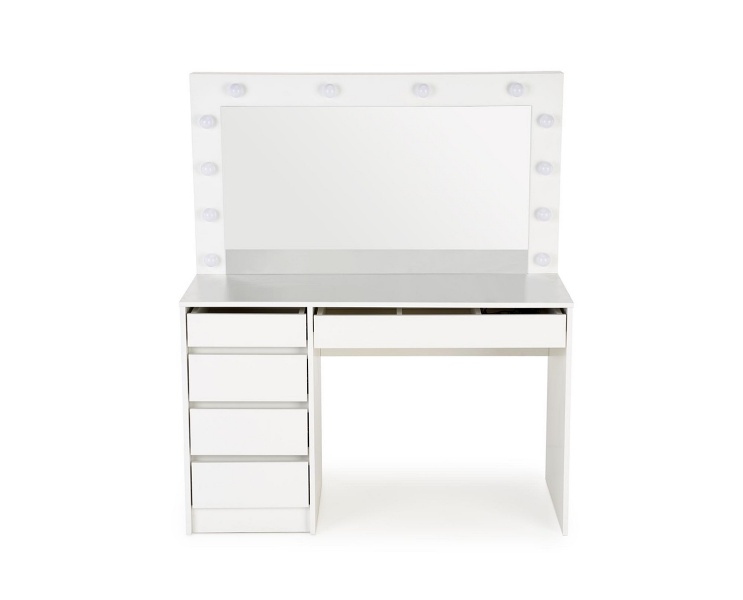 Masa de machiaj cu 5 sertare si oglinda cu led HOLLYWOOD XL WHITE 120x140x55cm alb