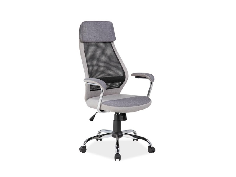 - Scaunul este realizat din material textil gri + plasa neagra.