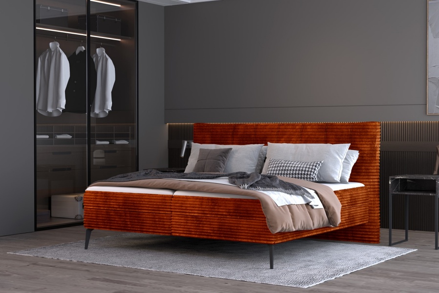 Folosirea tonurilor diferite de gri (deschis și închis) creează o atmosferă armonioasă și sofisticată. Această abordare monocromatică adaugă interes vizual fără a încărca spațiul, fiind ideală pentru un dormitor modern.