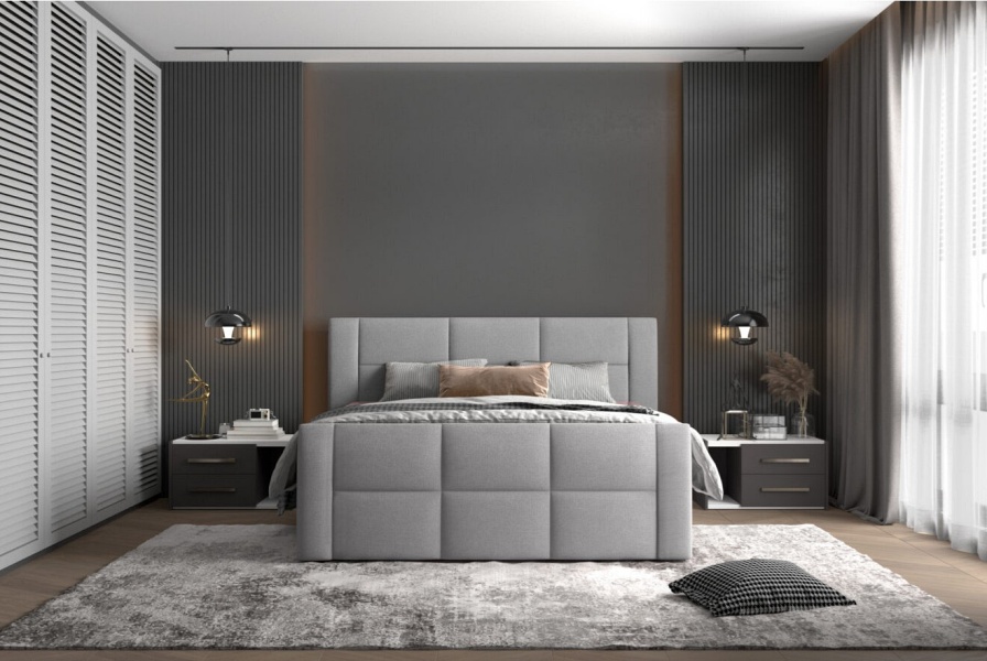 • Adaugă accente de gri deschis pentru tablia patului, noptiere sau textile decorative