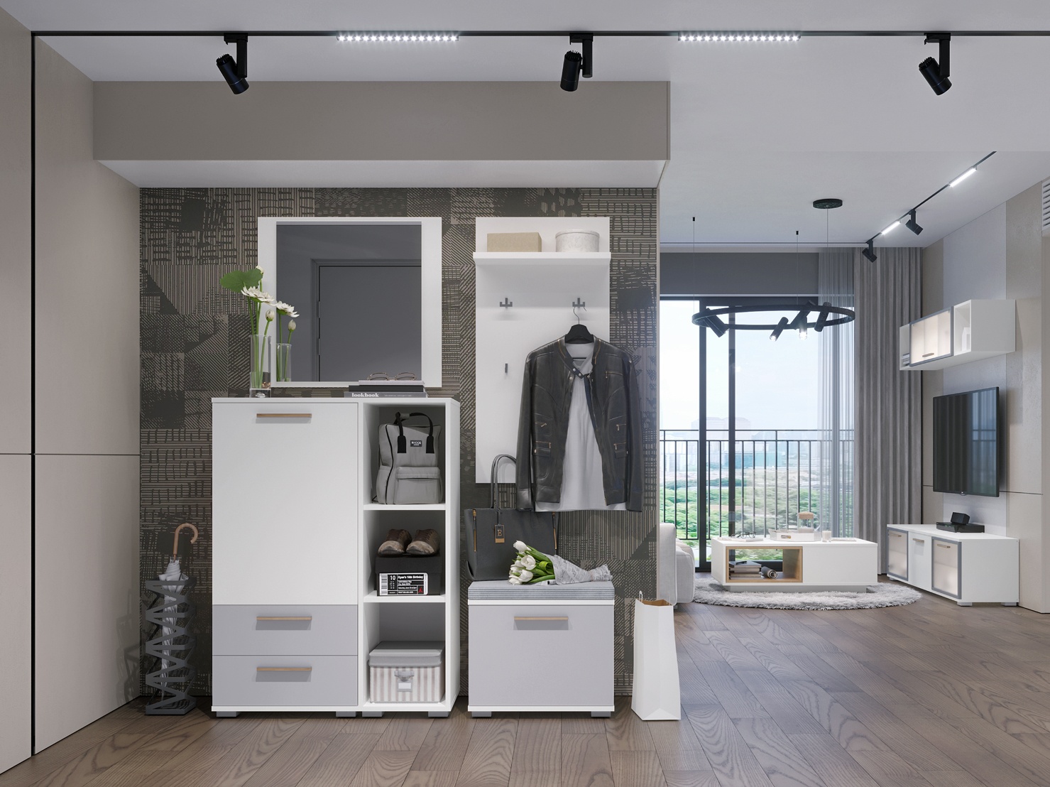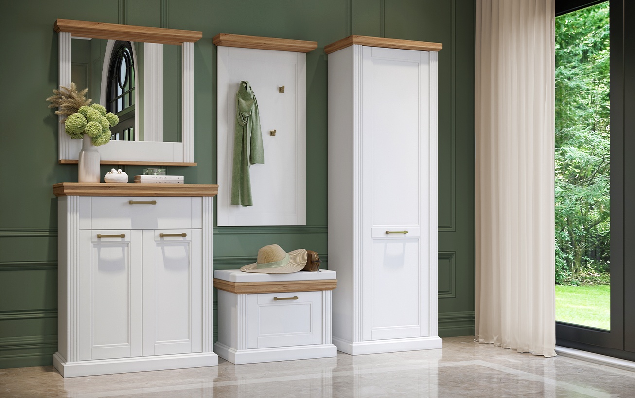 Într-un spațiu restrâns, fiecare piesă de mobilier trebuie să aibă un rol clar. Un cuier practic, un dulap îngust și un pantofar bine ales sunt suficiente pentru a păstra ordinea.
