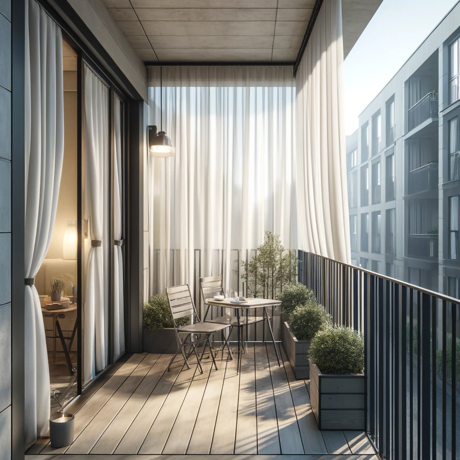 Perdelele ușoare din material vaporos pot aduce intimitate și rafinament balconului tău.