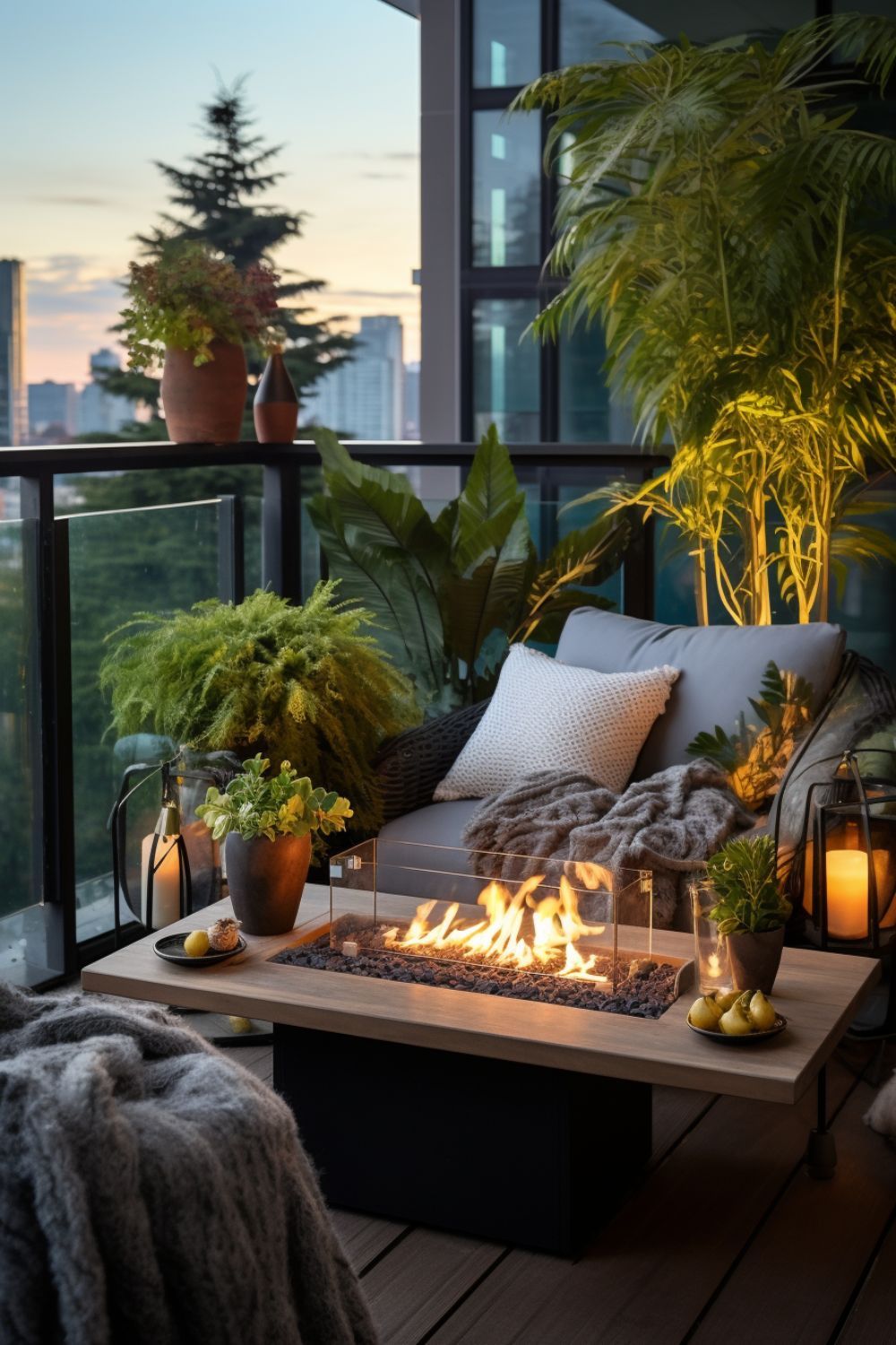 Un șemineu electric portabil sau o lampă cu efect de flacără poate aduce un vibe romantic și cald balconului tău.