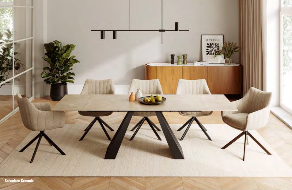 Masa este piesa centrală a diningului. Optează pentru un model proporțional cu dimensiunea camerei, lăsând suficient spațiu pentru circulație.