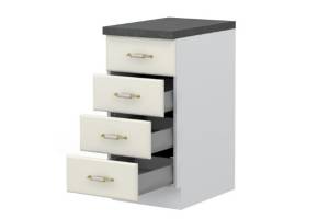 - Partea frontală a elementului este realizată dintr-un MDF complet lacuit UV, cu un efect mat moale de culoare fildeș