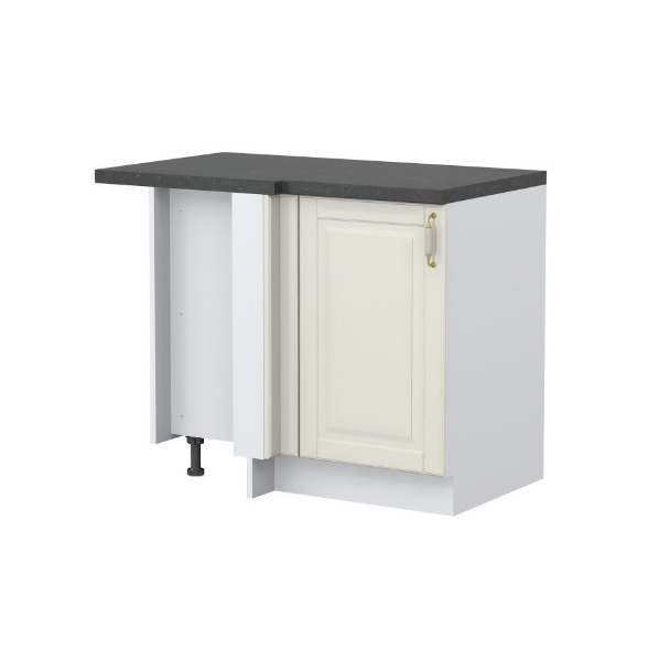 - Partea frontală a elementului este realizată dintr-un MDF complet lacuit UV, cu un efect mat moale de culoare fildeș