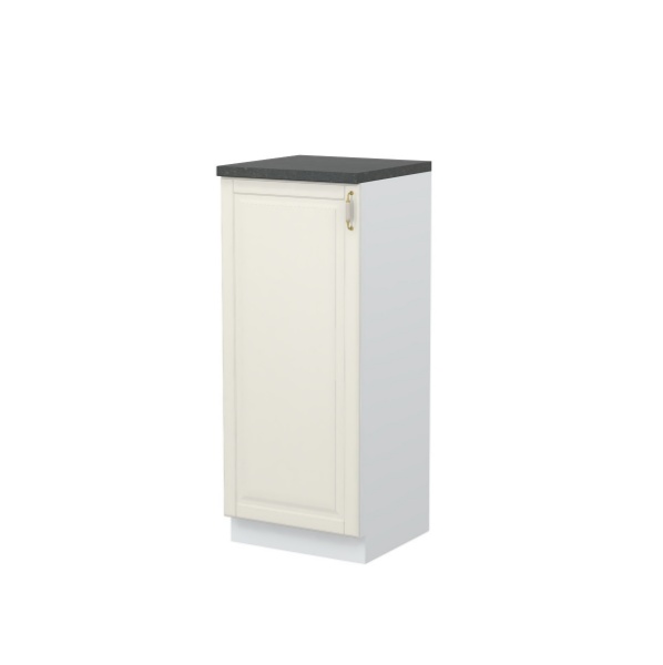 - Partea frontală a elementului este realizată dintr-un MDF complet lacuit UV, cu un efect mat moale de culoare fildeș