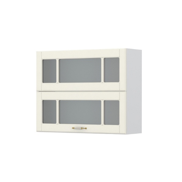 - Partea frontală a elementului este realizată dintr-un MDF complet lacuit UV, cu un efect mat moale de culoare fildeș