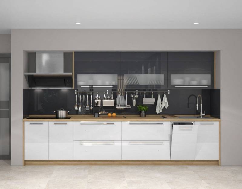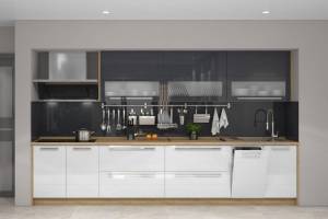 - Partea frontală a elementelor este din MDF profilat cu folie lucioasă în orice culoare din paleta de culori oferită