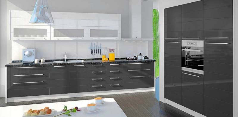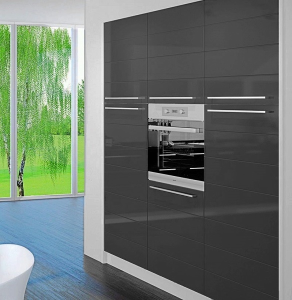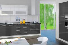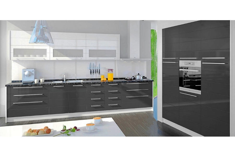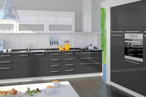 - Partea frontală a elementelor este din MDF profilat cu folie lucioasă în orice culoare din paleta de culori oferită