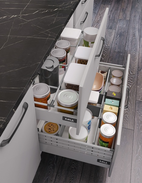 Organizator alimente ORN pentru baza cu sertar, compatibil cu sertare de 60, 80 și 90 cm lățime. Dispune de partiții ajustabile pentru o organizare personalizată și eficientă. Ideal pentru o bucătărie ordonată și funcțională!