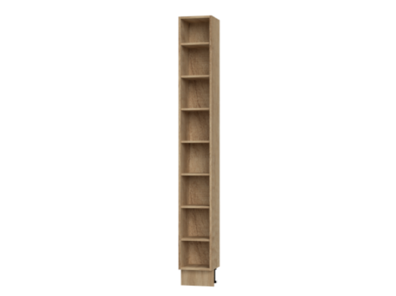 Corp înalt cu rafturi INFINITY 30x238cm, perfect pentru organizarea eficientă a spațiului din bucătărie. Fabricat din PAL melaminat de 18 mm, disponibil în nuanțe sofisticate: Nuc Pacific, Stejar Nebraska sau Ivory. Dotat cu picioare reglabile de 15 cm, combină funcționalitatea cu un design elegant.