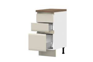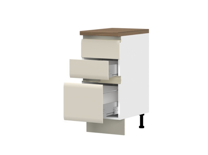 - Fronturile elementului sunt realizate din MDF cu design rotunjit complet lacuit cu lac UV de culoare casmir cu un efect mat moale.