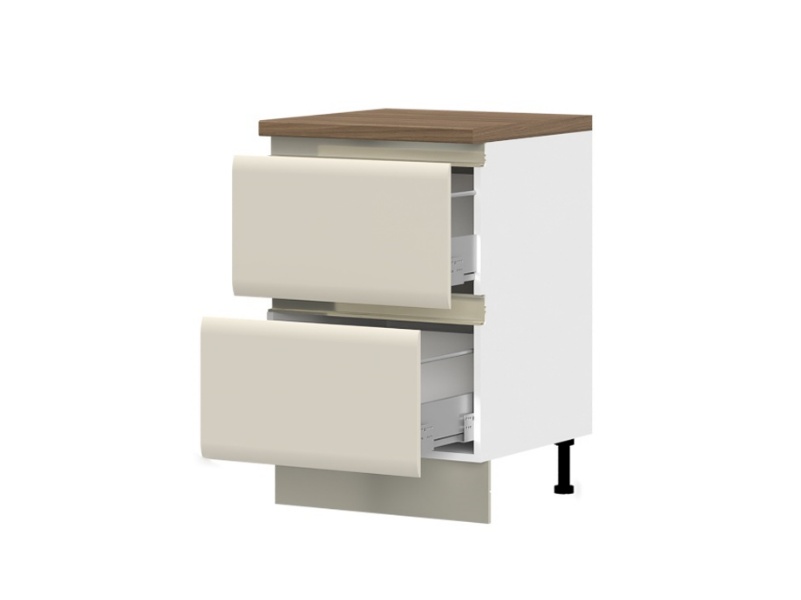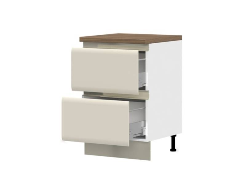 - Fronturile elementului sunt realizate din MDF cu design rotunjit complet lacuit cu lac UV de culoare casmir cu un efect mat moale.