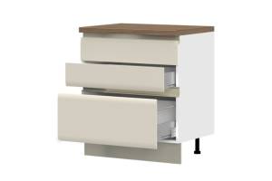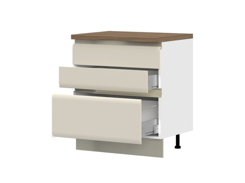 - Fronturile elementului sunt realizate din MDF cu design rotunjit complet lacuit cu lac UV de culoare casmir cu un efect mat moale.