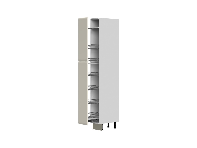 - Fronturile elementului sunt realizate din MDF cu design rotunjit complet lacuit cu lac UV de culoare casmir cu un efect mat moale.