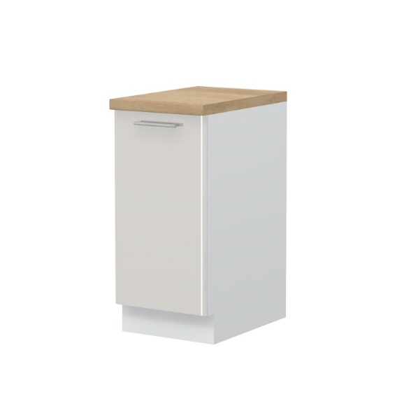 - Partea frontală a elementului este din MDF profilat, infoliat (nuante disponibile: alb lucios sau bej lucios) (18mm)