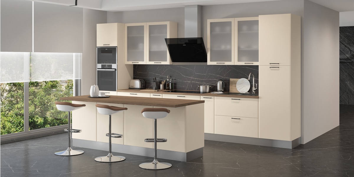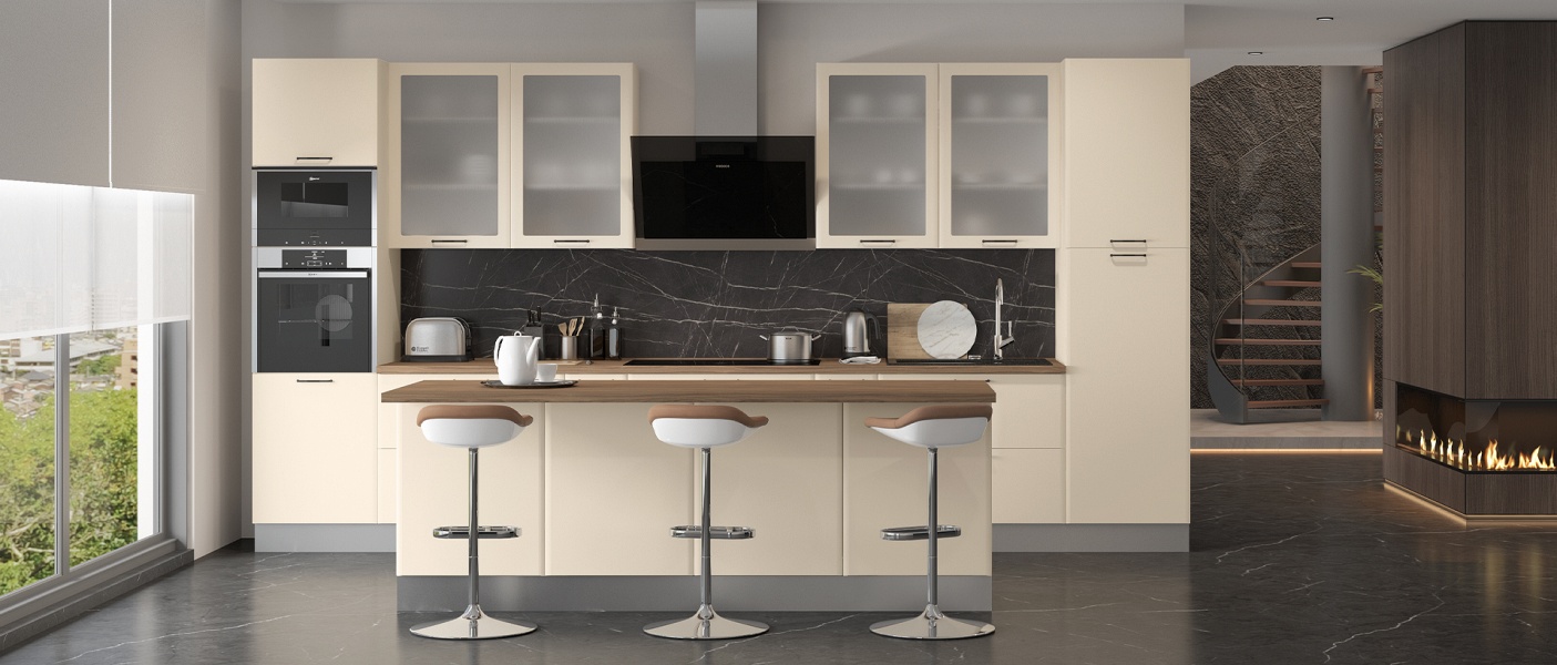 - Fata din MDF (19mm) profilat, lacuita cu lac UV, decor gri mat Perla