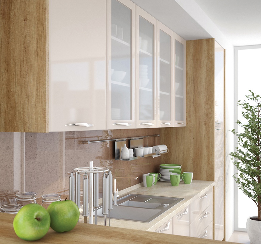 - Partea frontală a elementului este din MDF profilat cu folie lucioasă în orice culoare din paleta de culori oferită