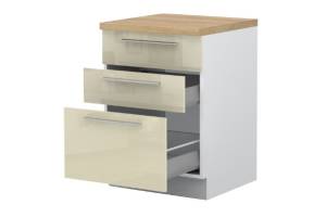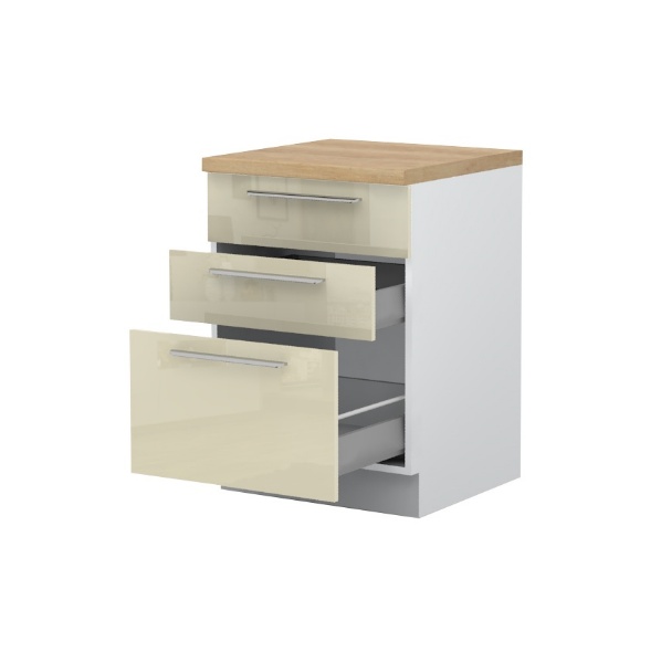 - Partea frontală a elementului este din MDF profilat, infoliat (nuante disponibile: alb lucios sau bej lucios) (18mm)