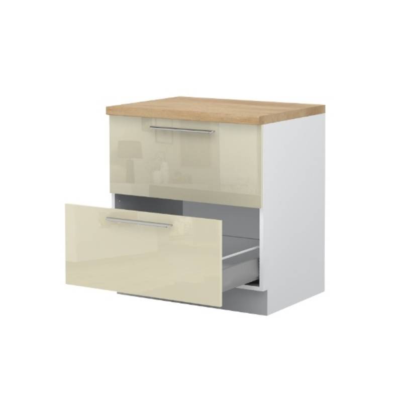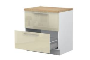 - Partea frontală a elementului este din MDF profilat, infoliat (nuante disponibile: alb lucios sau bej lucios) (18mm)