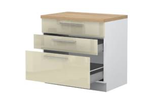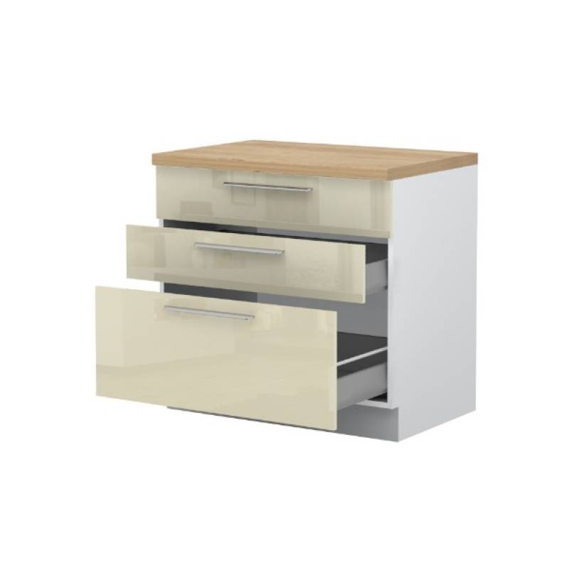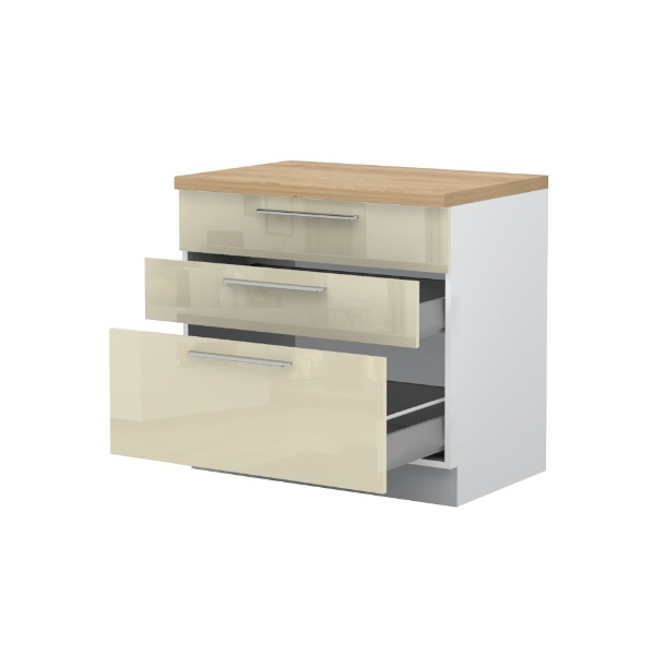 - Partea frontală a elementului este din MDF profilat, infoliat (nuante disponibile: alb lucios sau bej lucios) (18mm)