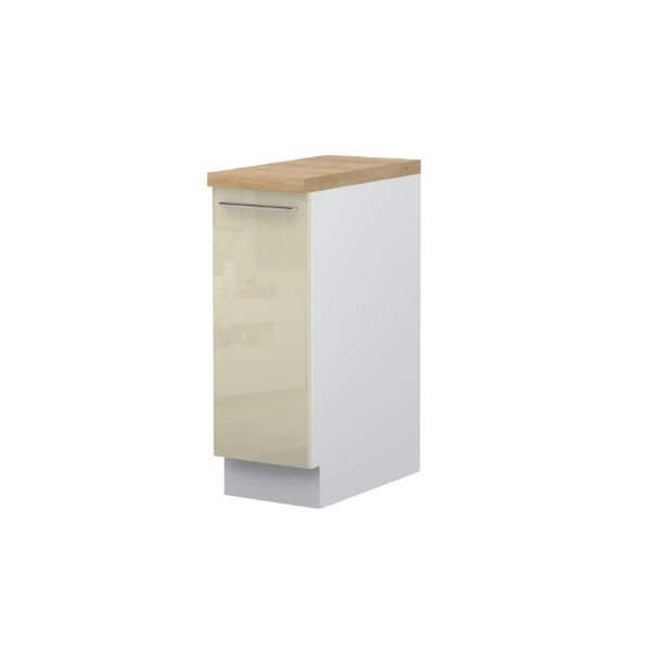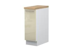 - Partea frontală a elementului este din MDF profilat, infoliat (nuante disponibile: alb lucios sau bej lucios) (18mm)