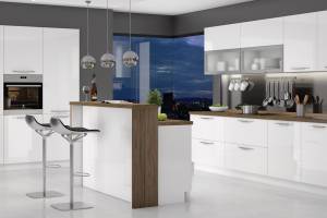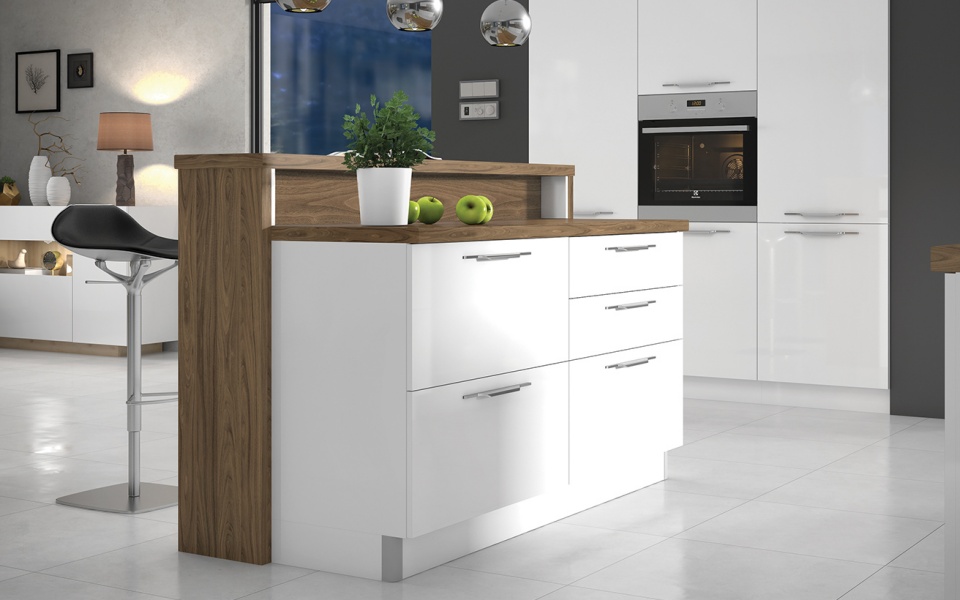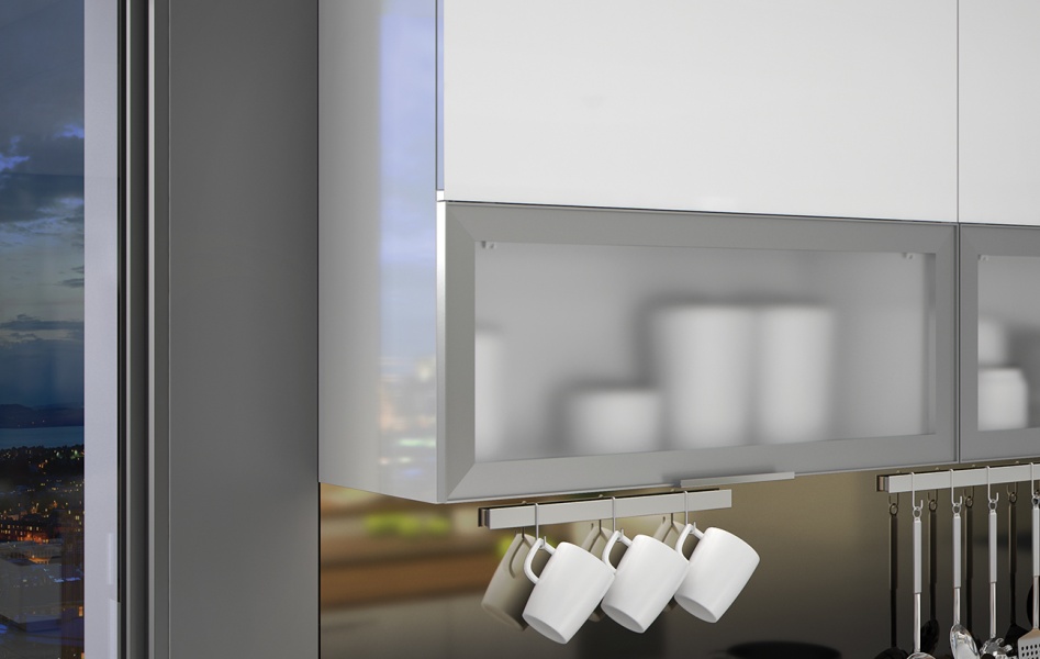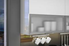 - Fronturile elementului sunt din PAL complet lăcuit cu lac UV cu luciu ridicat, în culoarea alb cristal