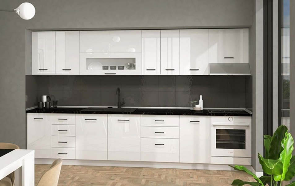 - Fronturile elementului sunt din PAL complet lăcuit cu lac UV cu luciu ridicat, în culoarea alb cristal