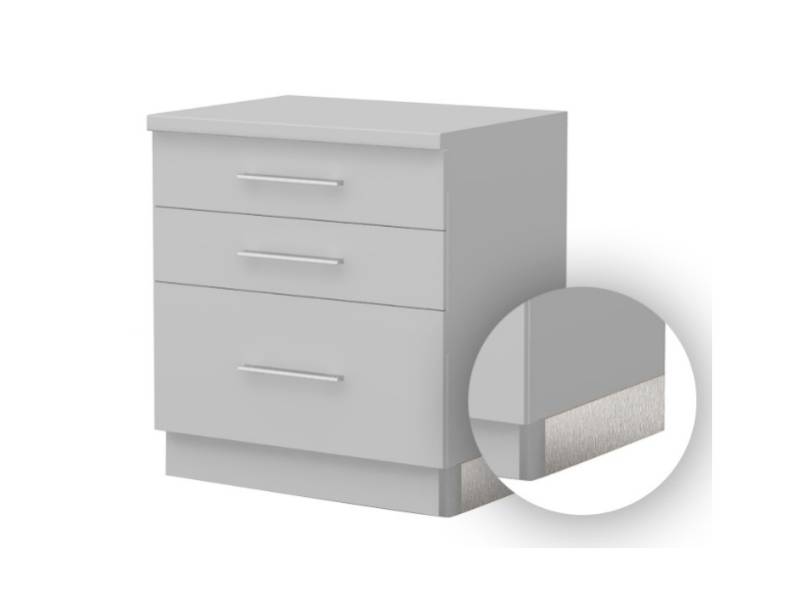 Plinta din PVC de pe partea din față are o aplicare din oțel inoxidabil