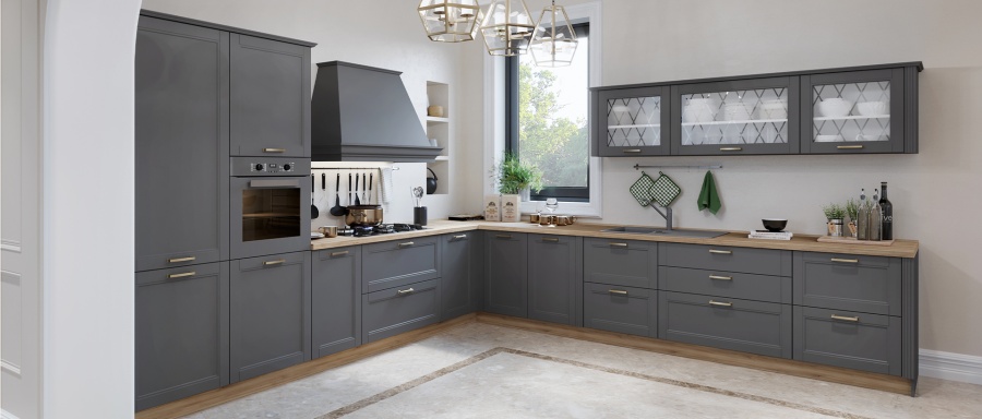 - Fronturile elementului sunt realizate din MDF sculptat complet lacuit cu lac UV de culoare grafit sau alb cu un efect mat moale.