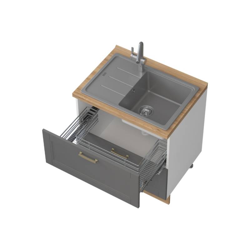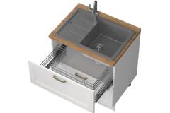 Colecția Tara , cu design clasic, se remarcă prin fronturile realizate din MDF sculptat, complet lăcuite cu lac UV de culoare grafit sau alb mat pentru un finisaj elegant și rezistent. Sistemul de închidere soft-close adaugă un plus de confort și funcționalitate, oferind un aspect rafinat și durabil.