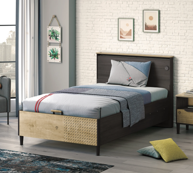 Patul are spatiu pentru depozitare tip lada.