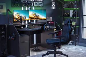 O structura compatibila pentru pasionatii de gamming avand posibilitatea ca blatul sa fie apropiat de corp si sa aveti o sustinere mai buna a incheieturilor si a mainilor.