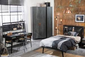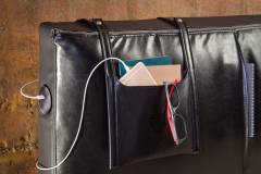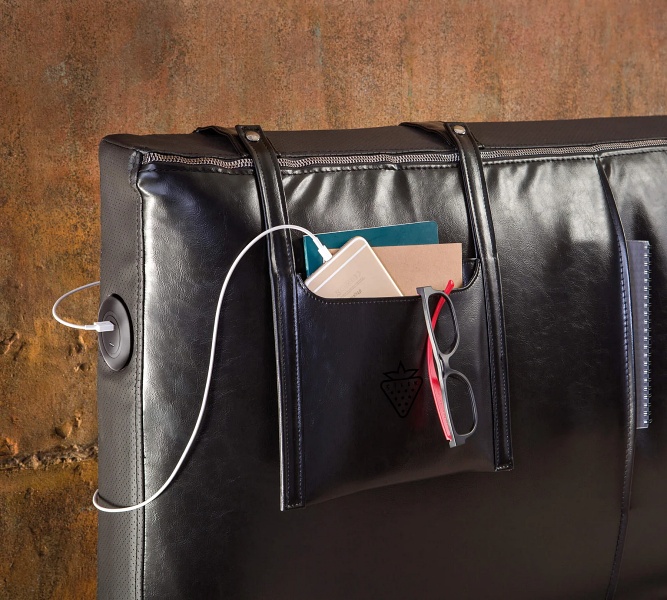Tablia patului este tapitata cu piele ecologica si are compartimente pentru depozitare.