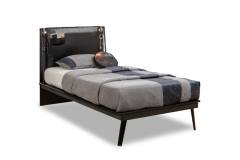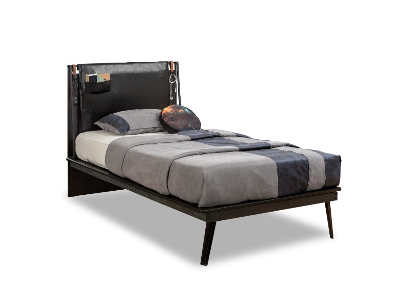 Tablia patului este tapitata cu piele ecologica si are compartimente pentru depozitare.