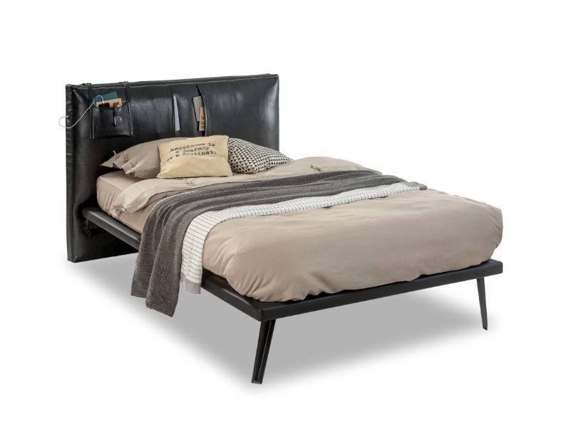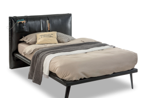 Tablia patului este tapitata cu piele ecologica si are compartimente pentru depozitare.