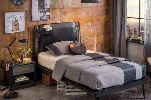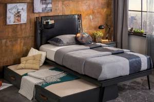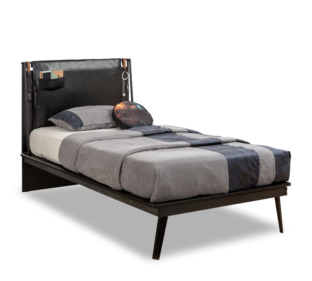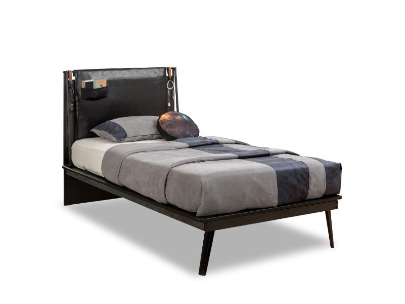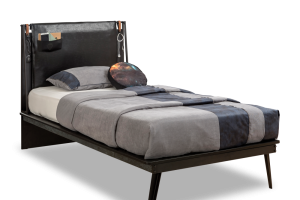 Tablia patului este tapitata cu piele ecologica si are compartimente pentru depozitare.