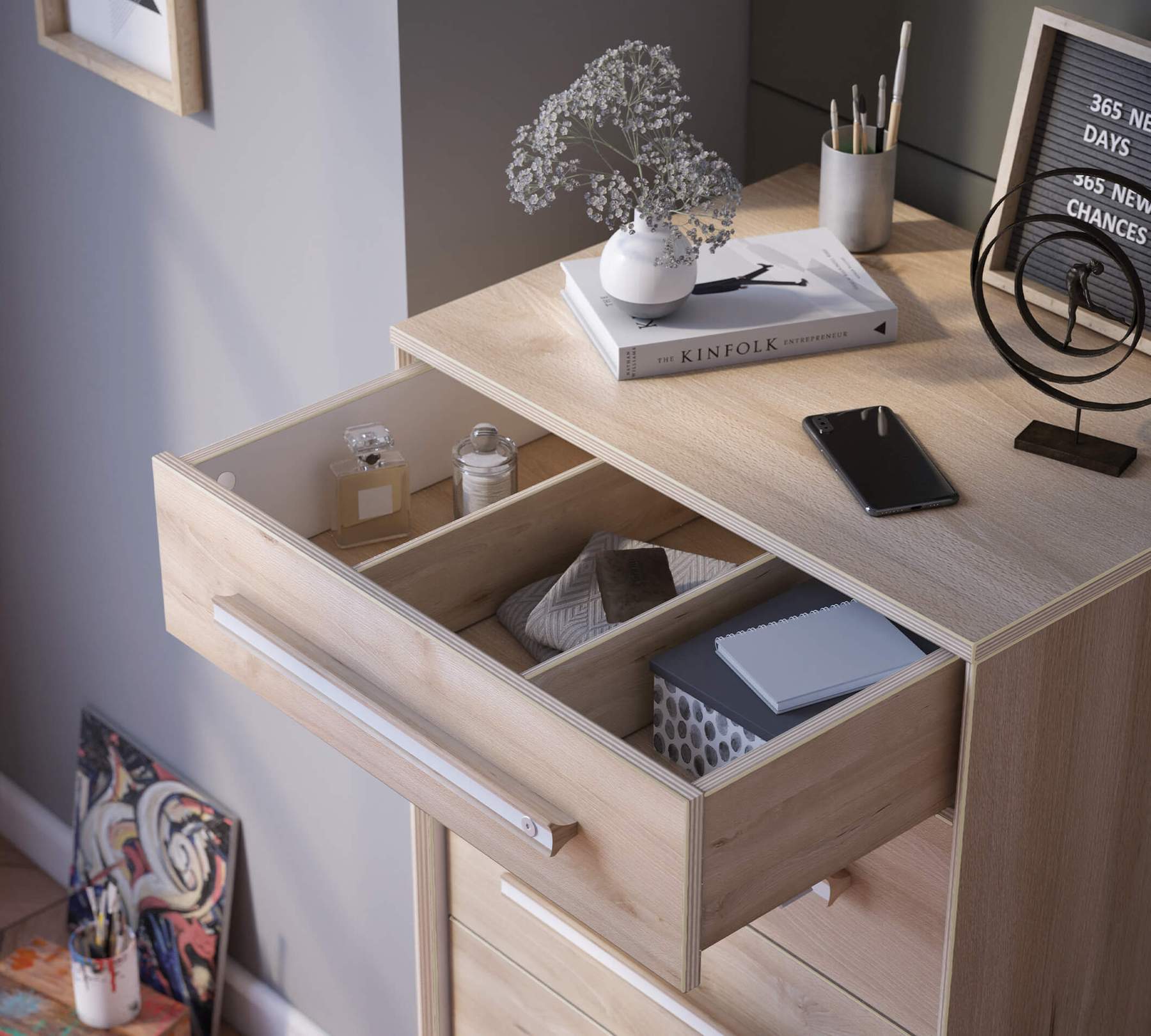 Colțurile comodei sunt rotunjite pentru siguranta copilului.