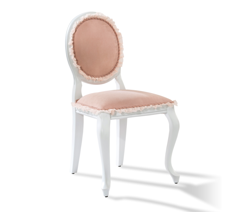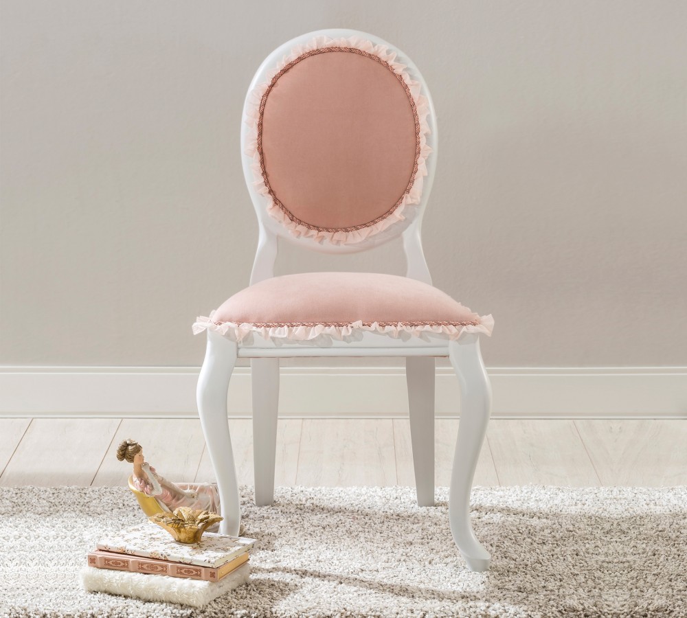 Scaun roz somon DREAM – combinația perfectă de eleganță și confort. Realizat din lemn masiv de fag, cu șezut din spumă poliuretanică și vatelină, oferă durabilitate și suport optim. Tapițat cu material textil în nuanțe de alb și roz somon, este ideal pentru a completa un decor delicat și modern. Perfect pentru camera copilului sau spații de relaxare!
