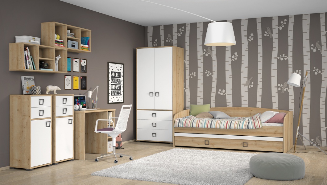 Dulap cu 2 usi si 3 sertare 84x198cm KIKI NATURAL