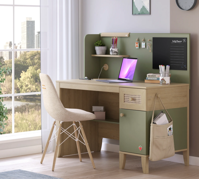 Biroul are spatii pentru depozitarea si aranjarea diverselor obiecte.