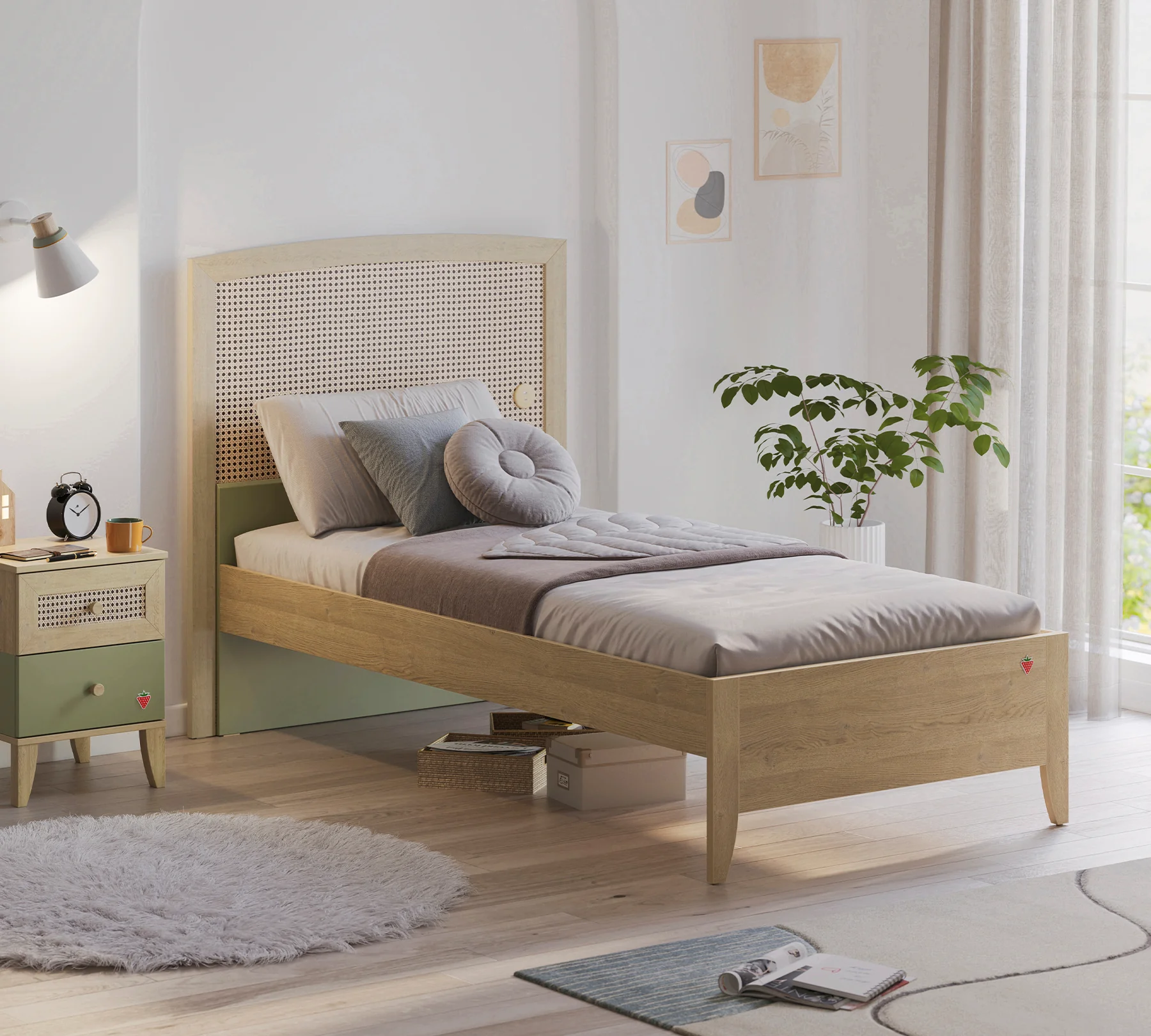 Pretul afisat nu include patul, montajul, alte piese de mobilier si accesoriile din imaginea de prezentare a produsului.